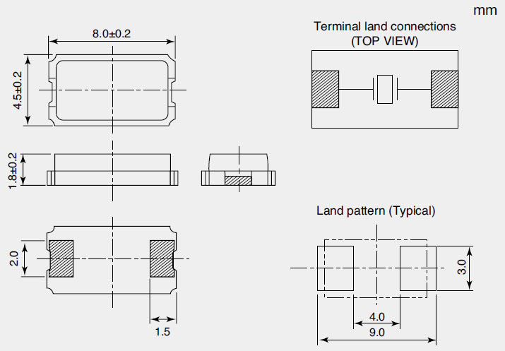標準頻率(L×W×H : mm) | 8.0×4.5×1.8 | |
