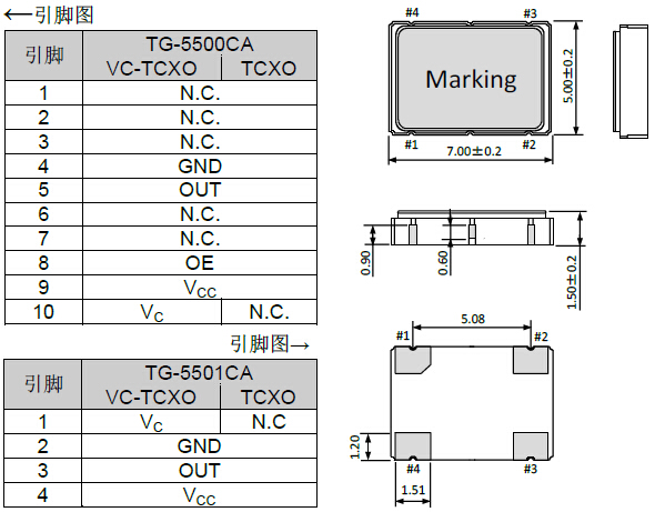 TG-5501CA振蕩器,5070mm溫補晶振,進口愛普生晶振,小型5070尺寸有源晶振,電源電壓3.3V,工作頻率10~50MHZ,小體積產品帶來了更高的穩定性能,接縫密封石英晶體振蕩器,精度高,覆蓋頻率范圍寬的特點,SMD高速自動安裝和高溫回流焊設計.