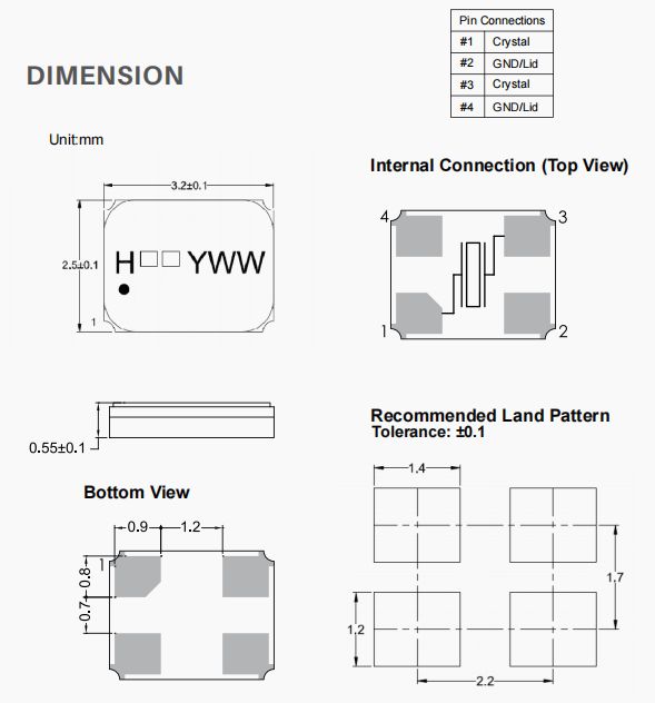 X3S032000BC1HA-CHPZ | 加高晶振 | HSX321S | 32 MHz | ±10ppm | 12pF |