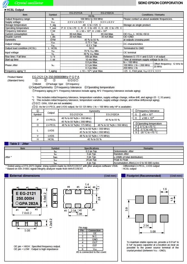 Q3805CA10017000 | EG-2121CA | 250.000000 MHz | 7.00 x 5.00 x 1.20 mm | LVDS | 2.375 to 2.625 V | 0 to 70 °C |